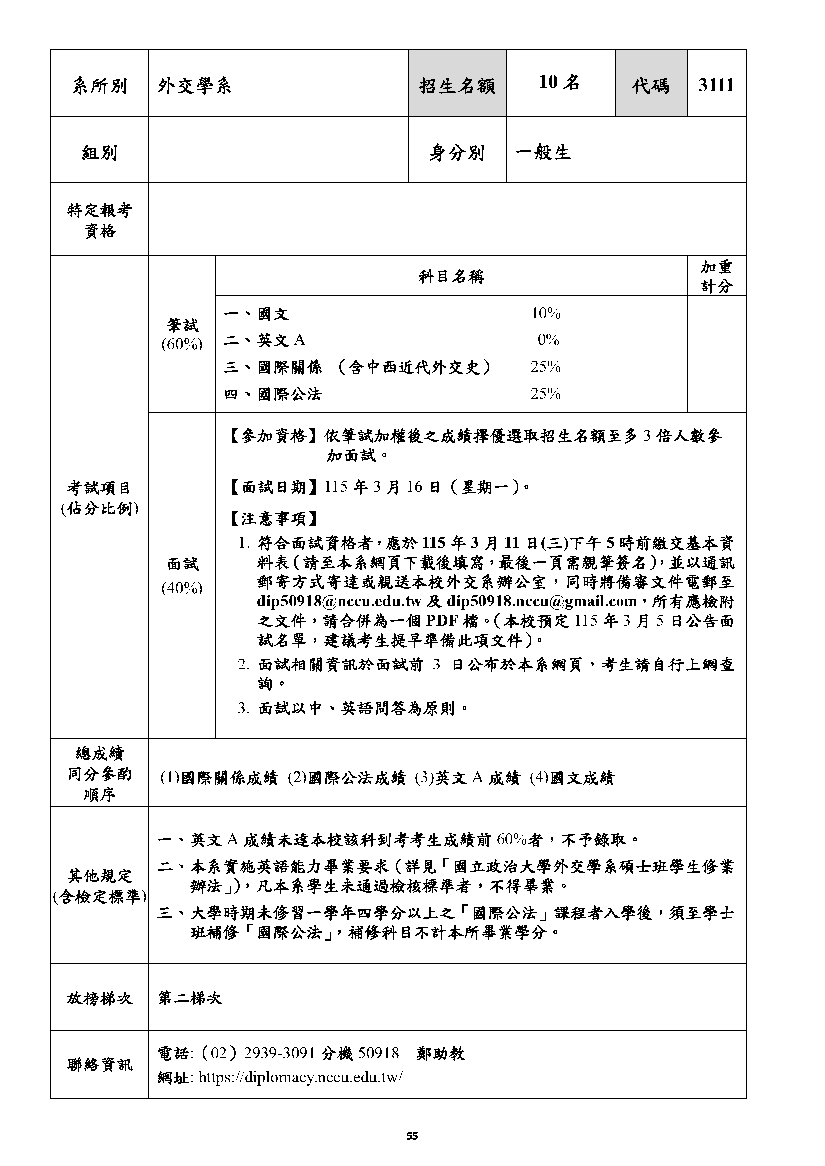 五、碩士班考試簡章及重要日程表:https://www.nccu.edu.tw/p/406-1000-20874,r122.php?Lang=zh-tw